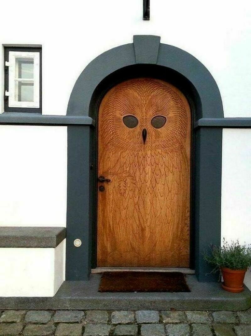 Деревянная дверь в виде совы в Копенгагене, которую сделали больше 90 лет назад