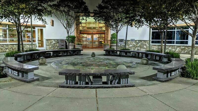 Скамьи возле библиотеки, у которых вместо ножек — книги
