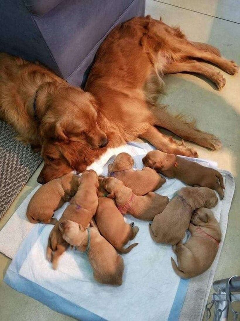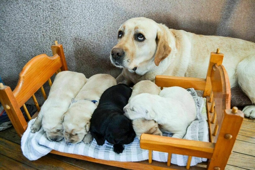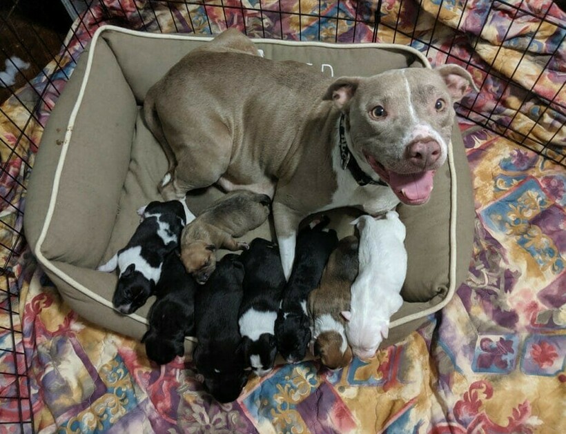 Целых восемь штук! Только родились, а уже с трудом умещаются в мамину кровать.