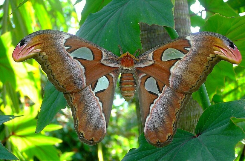 Павлиноглазка атлас, или Attacus Atlas — одна из крупнейших бабочек, которые живут на нашей планете (на других гигантов вы можете посмотреть вот тут). Однако судьба к этой красотке была неблагосклонна: она живет около недели, иногда меньше, и редко дотягивает до двух недель. У бабочек нет даже рта, так что фактически она не может питаться. Вся энергия павлиноглазке достается из той, которую накопила гусеница. Увидеть этих красавиц с чрезвычайно короткой жизнью можно в тропических лесах Юго-Восточной Азии.