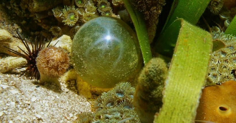 Как только не называют этот блестящий шарик: проклятая виноградина, морская жемчужина и даже «глазное яблоко моряка». Пожалуй, самое распространенное имя валонии — это водоросль-пузырь. Встретить ее можно везде на территории субтропиков и тропиков, чаще всего водоросли растут поодиночке, но иногда встречаются целые колонии этих блестящих шариков. Со стороны они напоминают необычную зеленую икру, которая сверкает на солнце, однако с икрой она ничего общего не имеет: это самая обычная водоросль, которая растет и увеличивается в размерах.