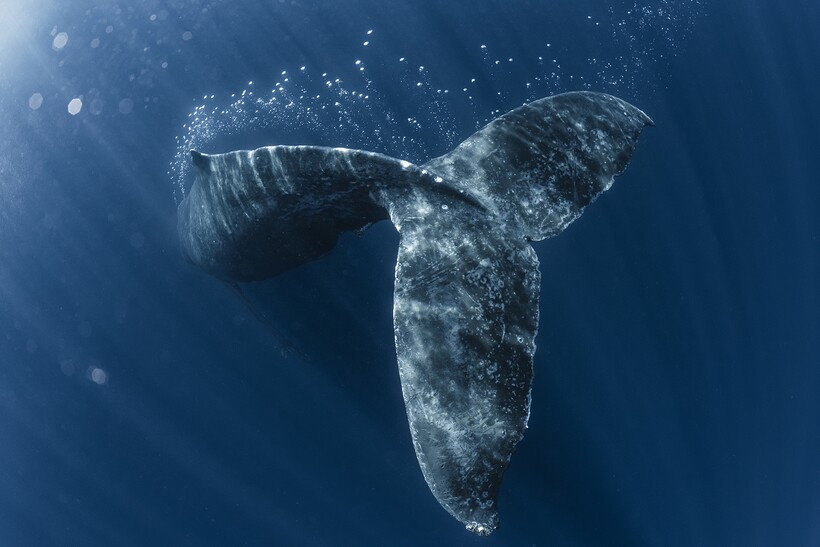 Горбатый кит ныряет на глубину. Дайсуке Курашима, Япония
