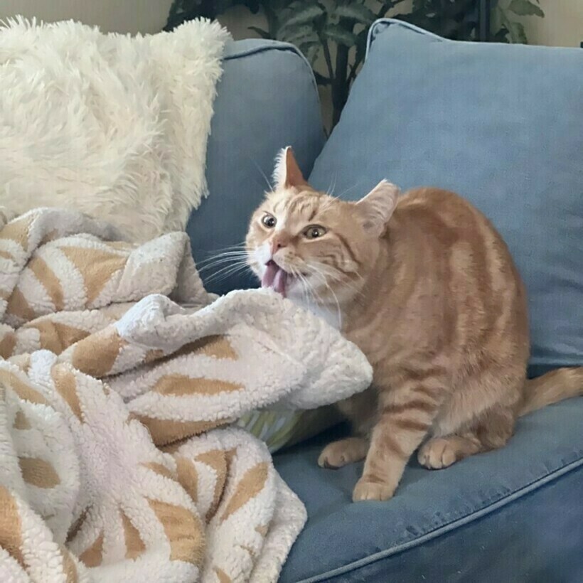 Этот котик следит за тем, чтобы не только его шерстка была чистой, но и одеяло, на котором он любит спать