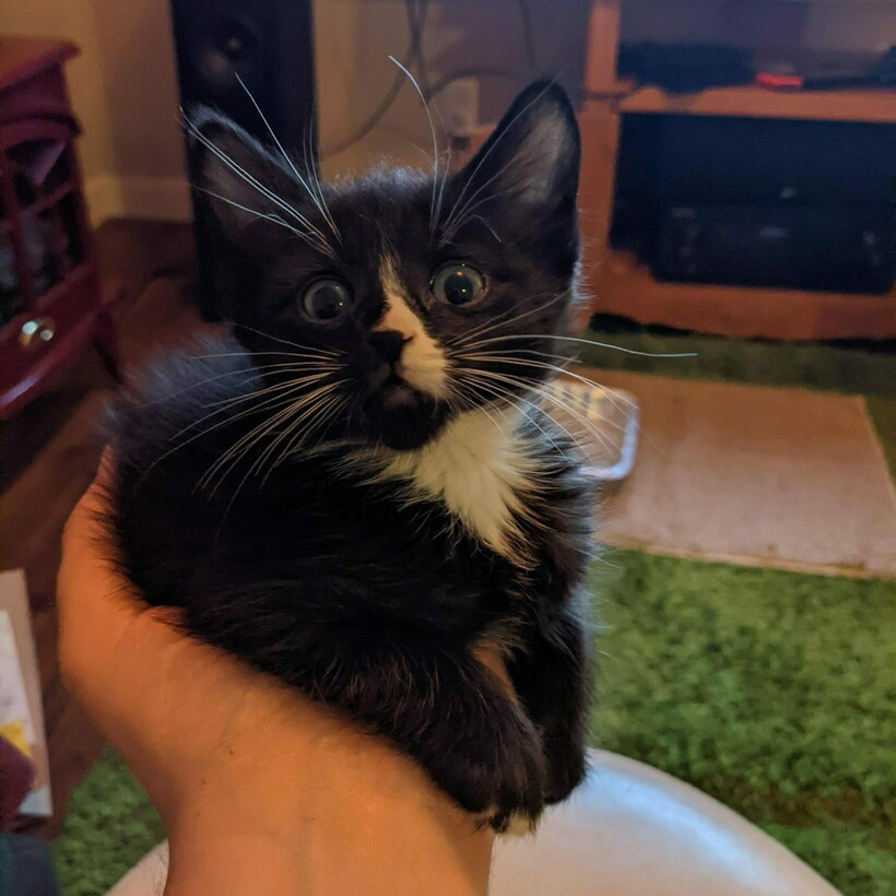 Котенок внезапно застыл с удивленным взглядом на хозяина, и тот не мог не сделать смешной снимок