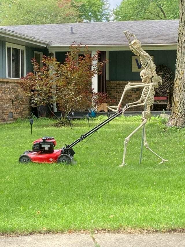 Скелеты решили забраться друг другу на плечи, чтобы косить траву было веселее.