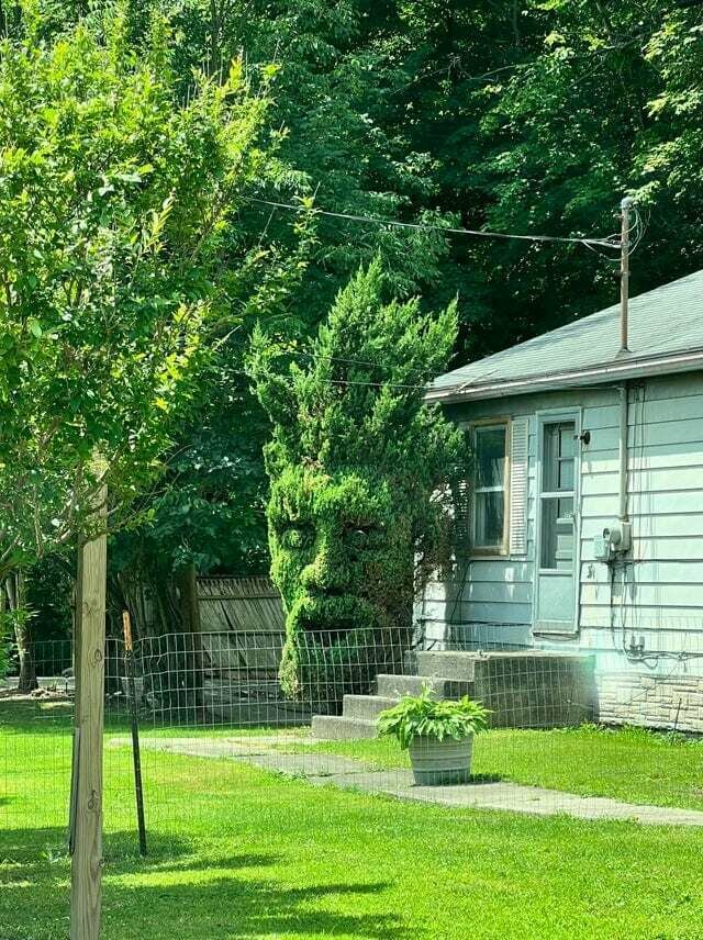 А этот садовник решил немного попугать соседей и выстриг из кустов, растущих во дворе, большого зеленого монстра.
