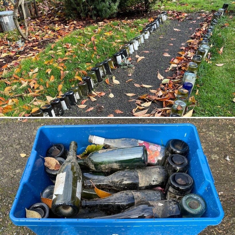 Оказывается, бордюр для садовой дорожки можно сделать из старых бутылок.