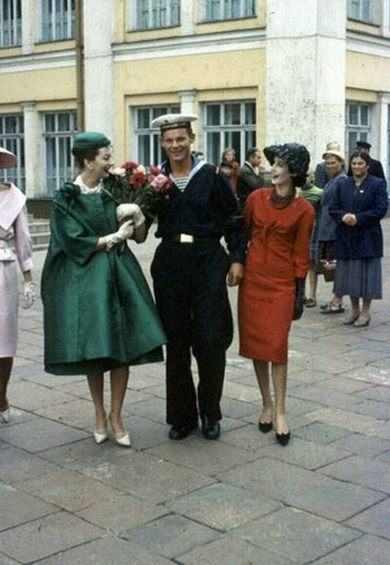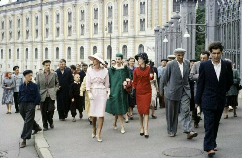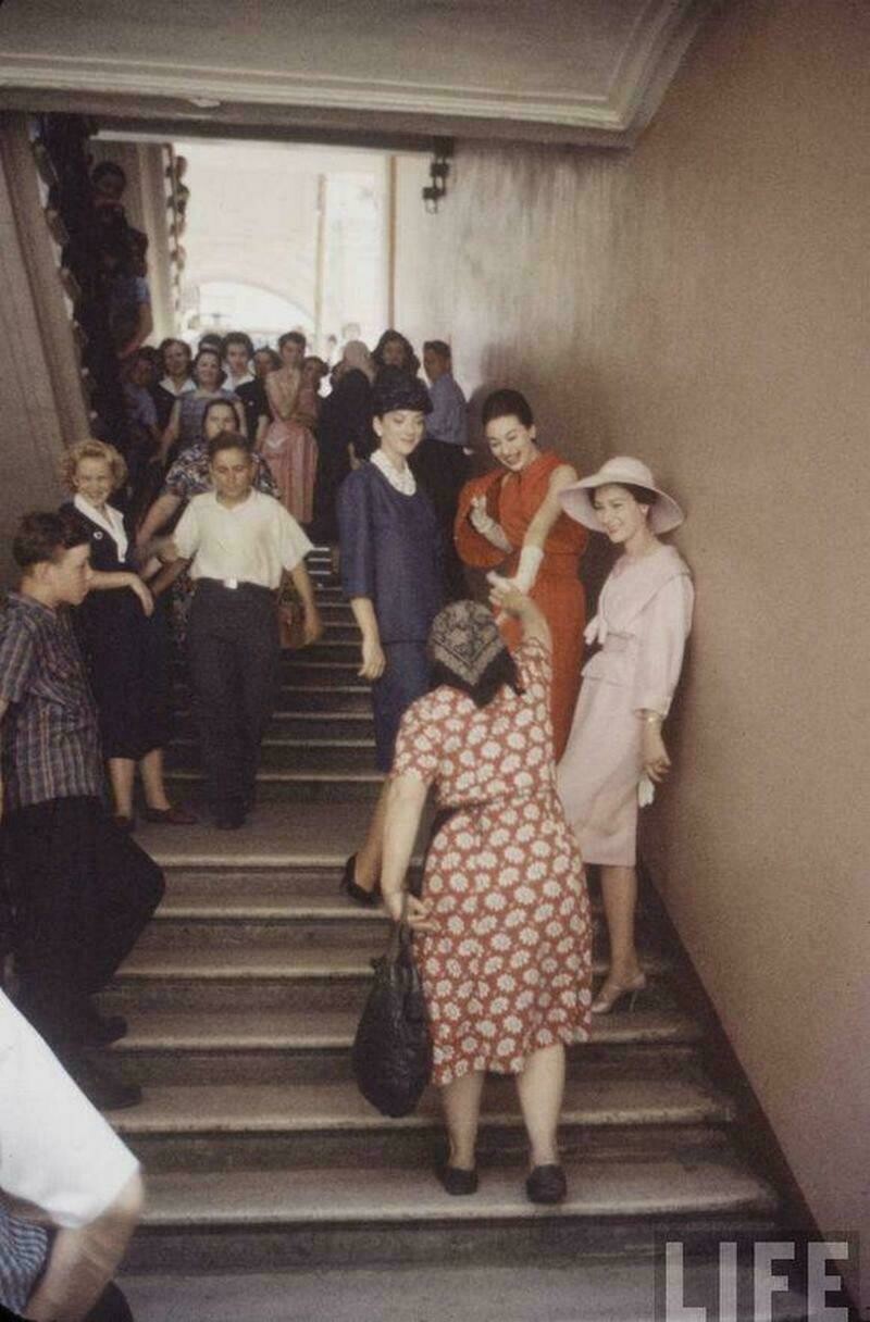 Это случилось в самый разгар оттепели: поездка модного дома имела большое политическое и культурное значение. Конец пятидесятых годов был знаковым для подобных мероприятий: например, в это время как раз состоялась первая выставка американских товаров в СССР, ради которой советские граждане ехали из других городов в Москву. Посмотреть, как это было, вы можете в другом материале. Именно в то время и состоялось знаковое путешествие моделей Dior в Москву. Привез их молодой Ив Сен-Лоран, который тогда руководил компанией. Дизайнер всегда тепло относился к русской культуре и России: например, всех его собак звали Мужик (Moujik). Но, конечно, эта поездка была не праздным развлечением ценителя русской классики, это была демонстрация целого мира, который так и не построили в СССР. Путешествие было тщательно спланировано заранее, и в него отправились самые красивые модели Франции. Они должны были прогуляться не только по подиуму, но и по улицам Москвы, конечно же, по тем, где было многолюдно, и показаться советскому народу во всей красе. На лицах жителей столицы, которые столкнулись с француженками, были совершенно непередаваемые словами эмоции.