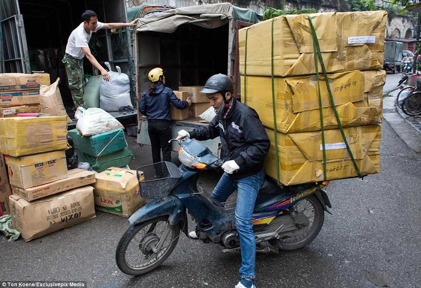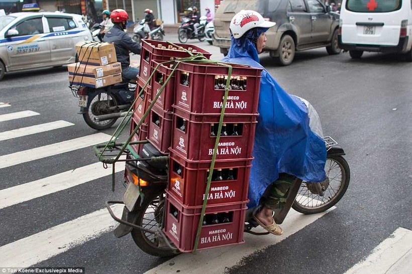 Удивительно, но вьетнамцы используют мопеды, мотоциклы и скутеры для перевозок цветов, крупных коробок, полиэтиленовых труб, ящиков с бутылочным пивом, упаковок с газировкой и даже деревьев.