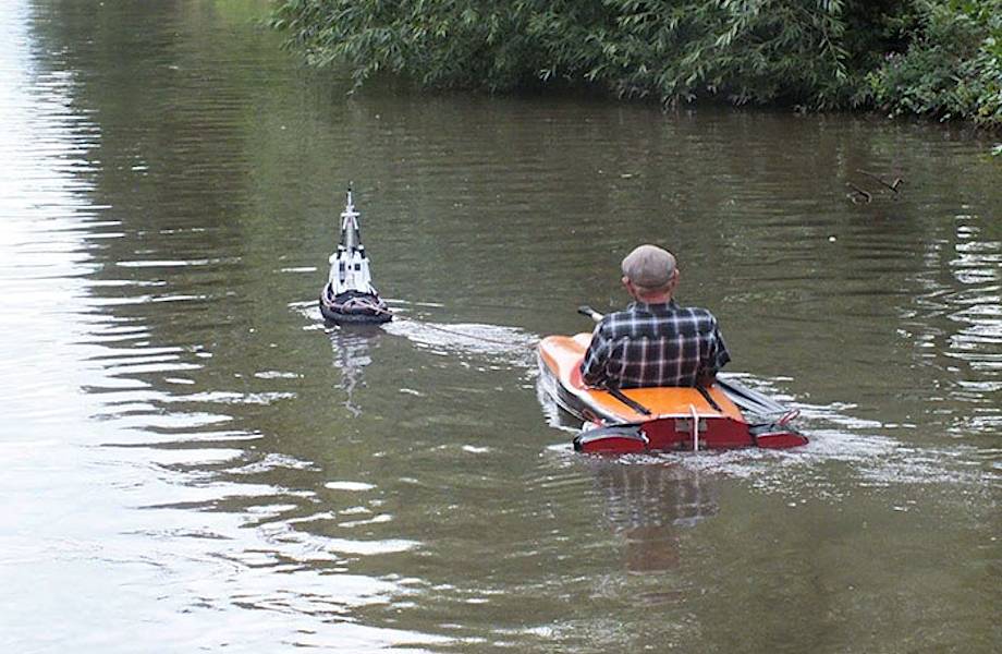 Неделю назад британец Мик Кэрролл был проездом в городе Маркет Дрейтон, где стал свидетелем необычного зрелища — мужчина сплавлялсяпо каналу с помощью миниатюрного кораблика на дистанционном управлении. Кэрролл сфотографировал эту занимательную сцену и поделился ею в соцсетях. Фотография стала мегапопулярной и набрала огромное количество лайков.