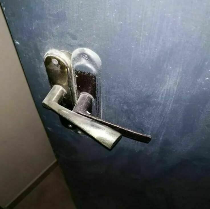 Сложно сказать, зачем кому-то понадобилось устанавливать одну ручку на другую, но все же это случилось.