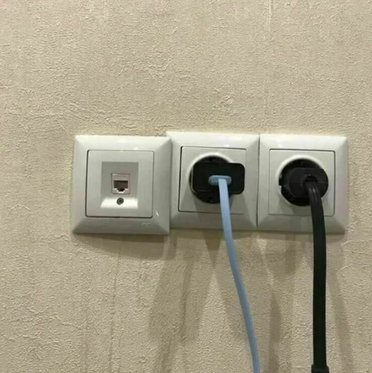 Эту розетку просто установили поверх двух других, и это выглядит ужасно.