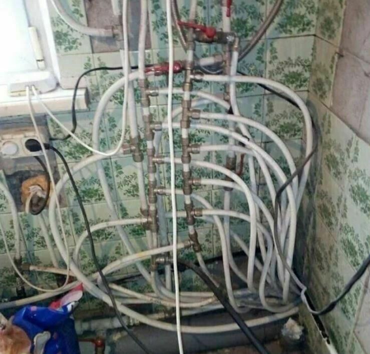 Запутанные трубы очень похожи на наушники, которые связались в кармане в узел.