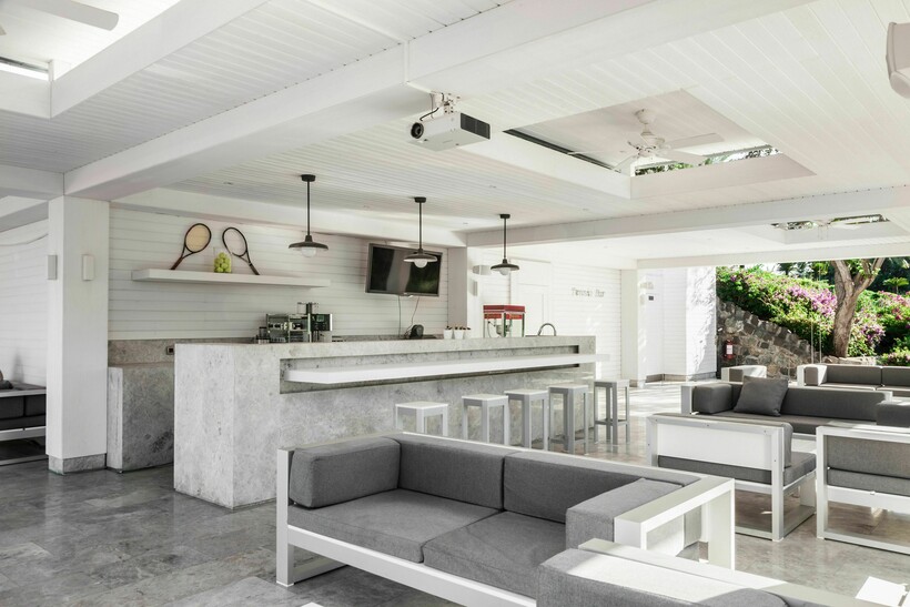 Среди большого разнообразия баров и лаунжей отеля, которые находятся в здании гостиницы, на пляжах, у бассейна и теннисных кортов, стоит выделить Green Hill Silence Bar. Это бар на холме с панорамным видом на горы и залив, куда гости приходят наслаждаться закатом. Места здесь расположены как в театре, где каждый вечер дают представление исключительной красоты — солнце, уходящее за горизонт. Зрелище сопровождается классической музыкой — и запотевшим бокалом с напитком.