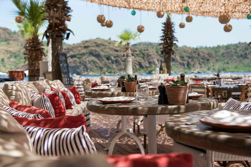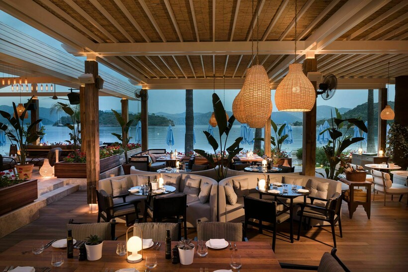 На главном пляже находятся еще два ресторана. Maris Kitchen — современное брассери, здесь подают легкие и здоровые закуски, сэндвичи, пасту, пиццу, блюда, приготовленные на гриле, все это — из отборных фермерских продуктов. Nusr-Et — один из лучших стейкхаусов в мире, cозданный звездой инстаграма, шеф-поваром Нусретом Гёкче.