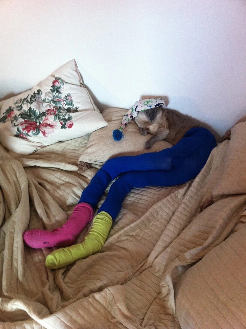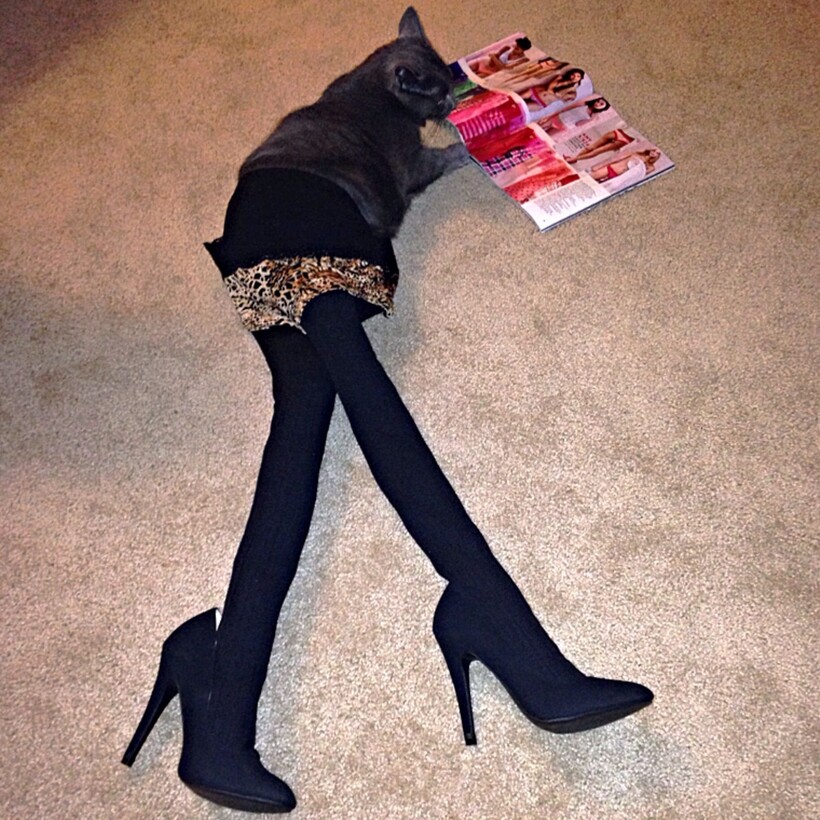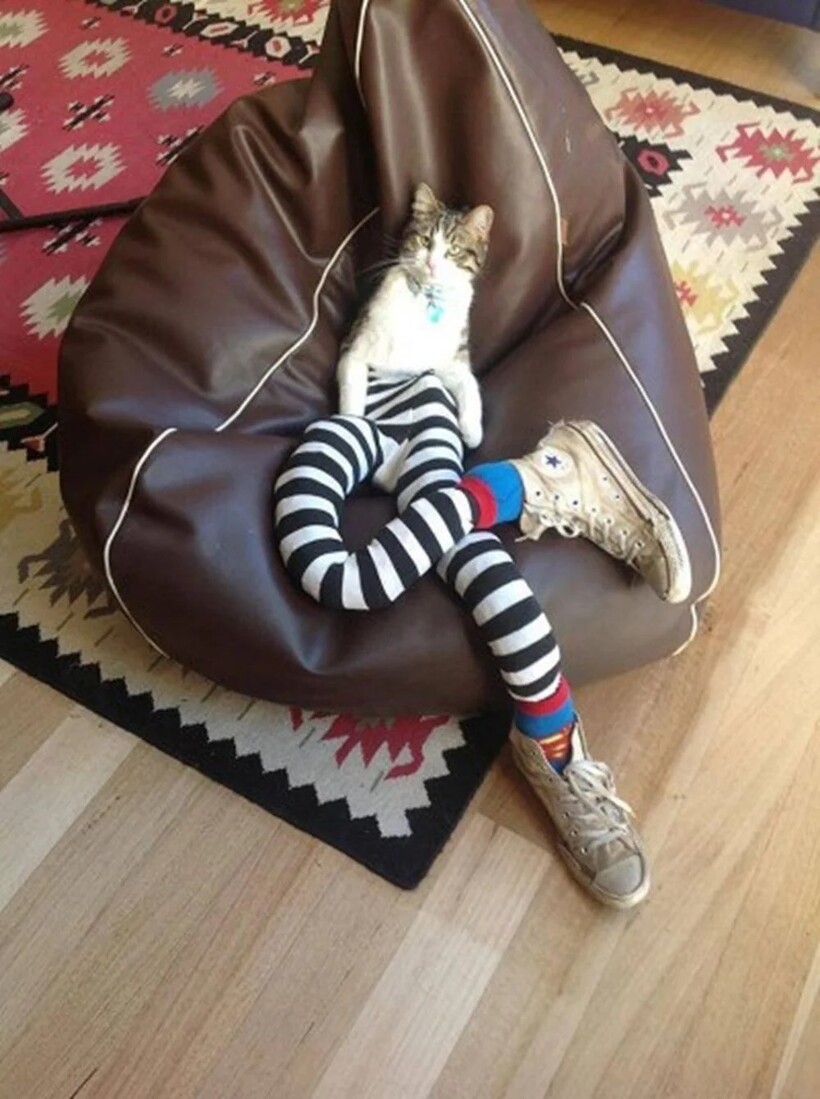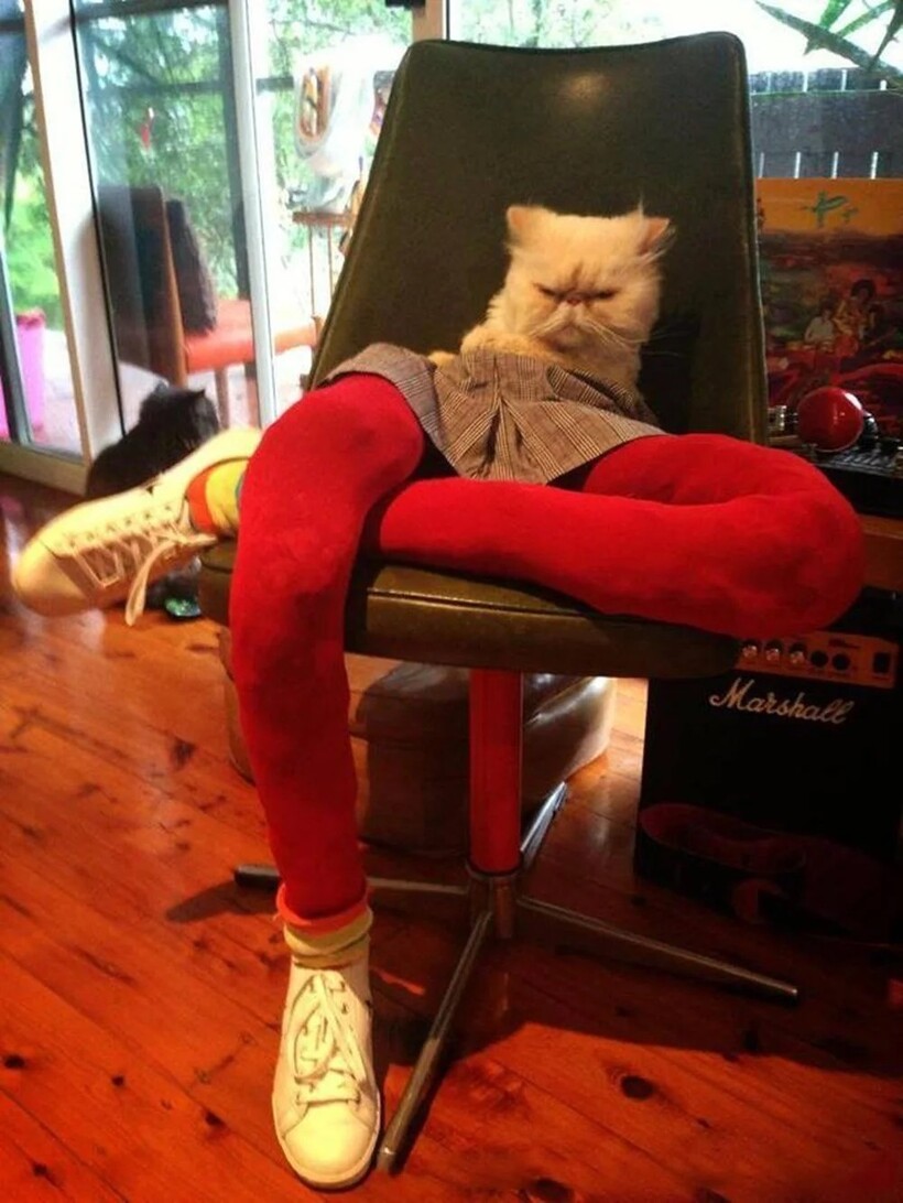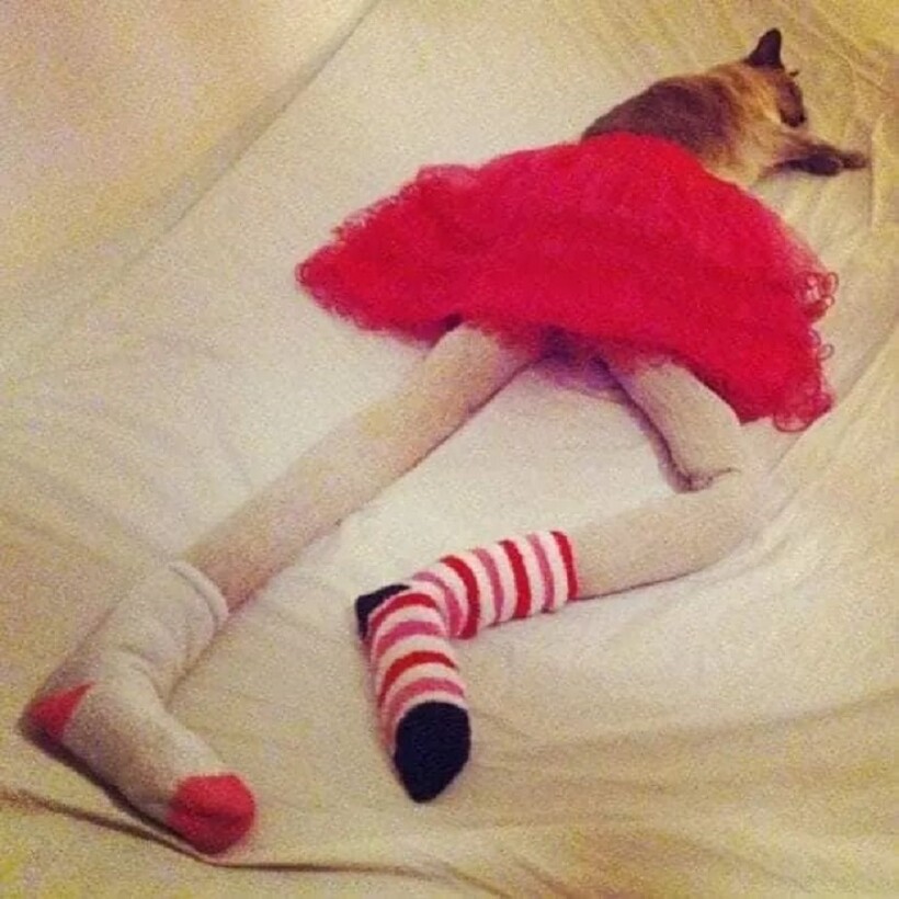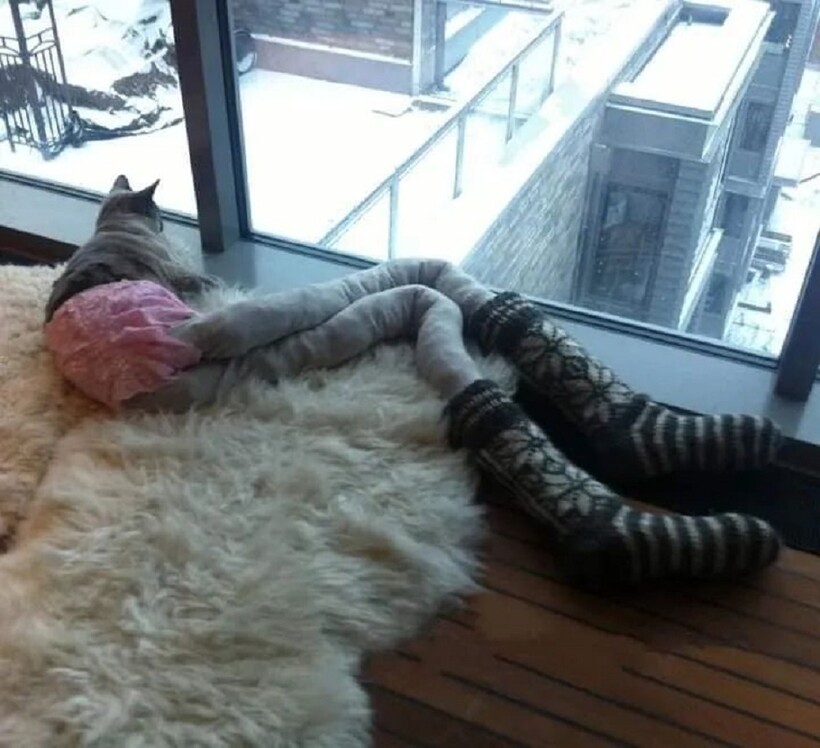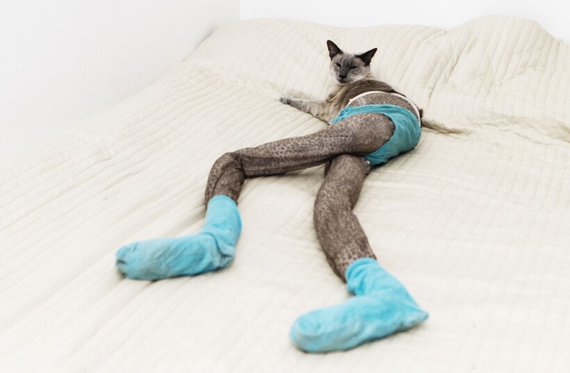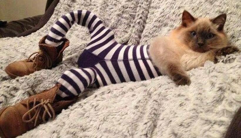 Весьма странно видеть кошек в колготках и носках, но интернет не перестает нас удивлять