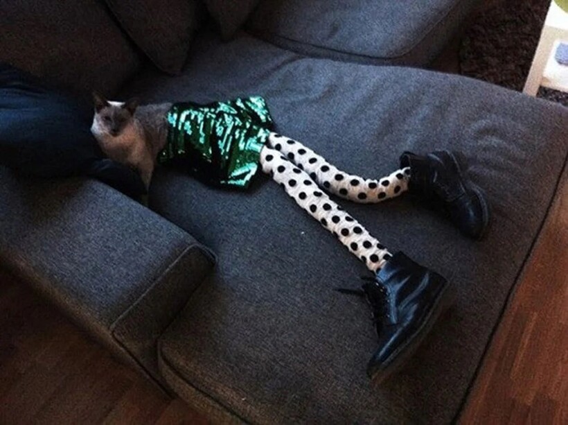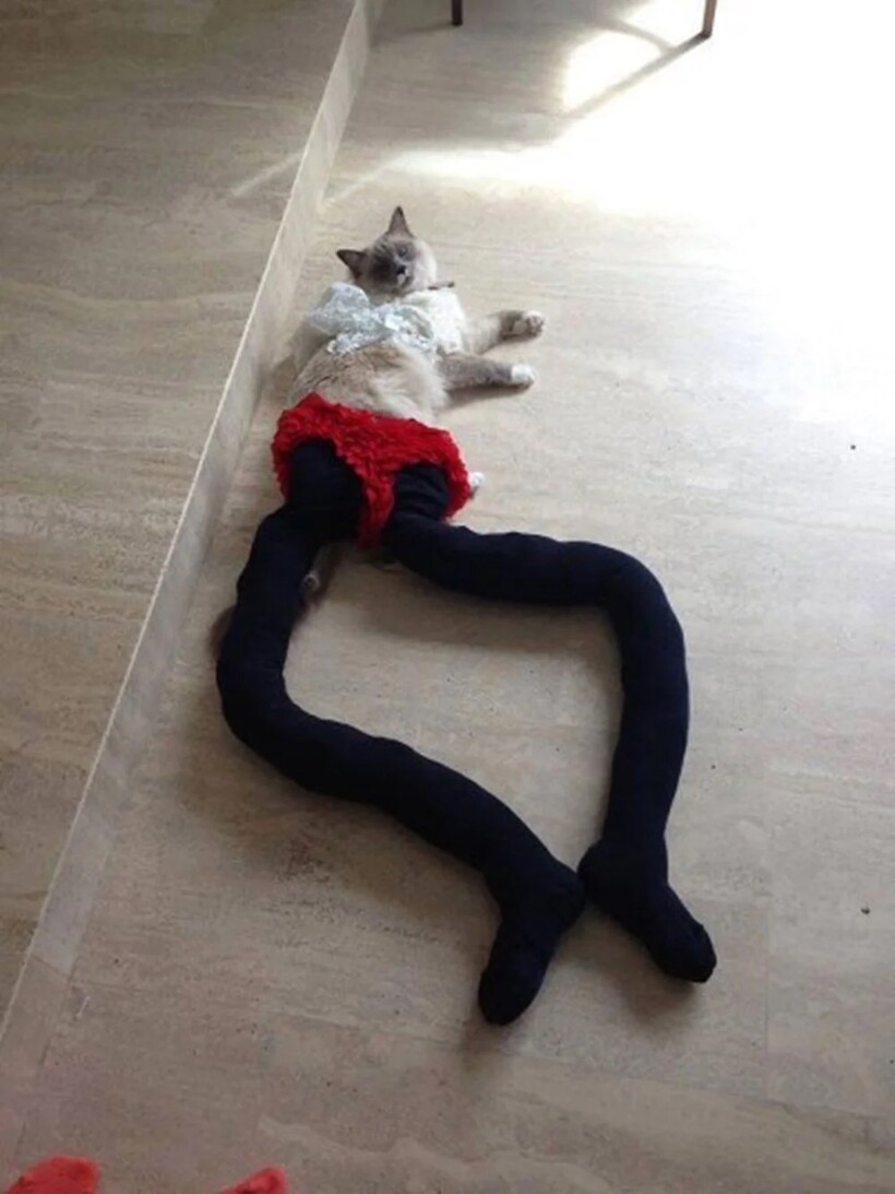 Не известно, кто первым придумал наряжать питомца в колготки, но идея вызвала массу улыбок у зрителей