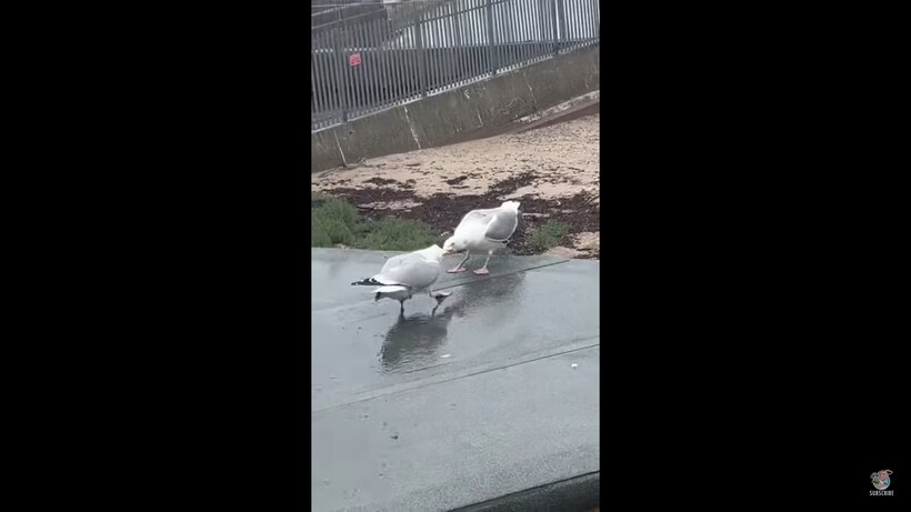 В конечном итоге одна из чаек просто падает с крыши, не рассчитав силу, и поединок закончился. Выигравшая чайка с удовольствием полакомилась завоеванной вкусняшкой. И самое интересное: когда ее соперница упала, чайка как будто начала смеяться! Конечно, это не могло не вызвать смех у людей, которые наблюдали за борьбой и снимали это на видео. Такое ощущение, что чайка так ехидно праздновала свою победу.