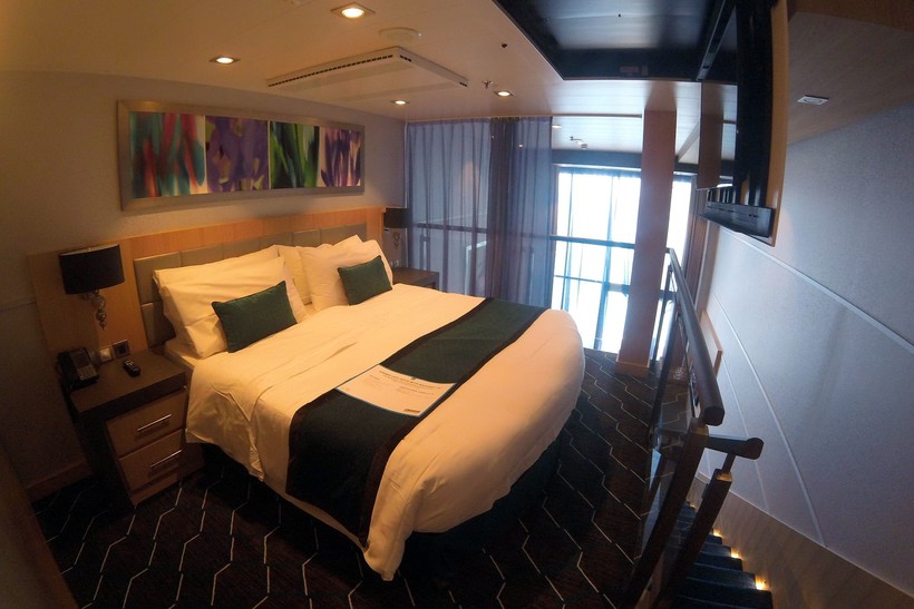 Каюты тут на любой вкус и кошелек: есть как небольшие комнаты, так и класса «люкс». Во многих имеются настенные экраны, которые еще называются «виртуальными балконами». Они показывают все, что находится вокруг лайнера. Всего кают 2747.