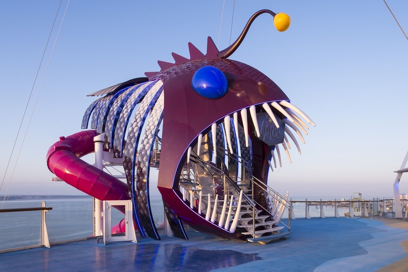 Но и это еще не все: на палубе есть водные горки. Самая длинная из них спускается вниз на 10 палуб и равна тридцати метрам. А для особых экстремалов работают две горки The Abyss без воды, высотой с десятиэтажный дом. Спуск на них проходит на войлочных матрасах.