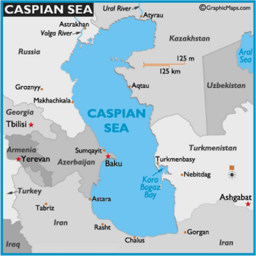 Озеро омывает берега 5 стран: Казахстана, России, Ирана, Туркмении и Азербайджана.