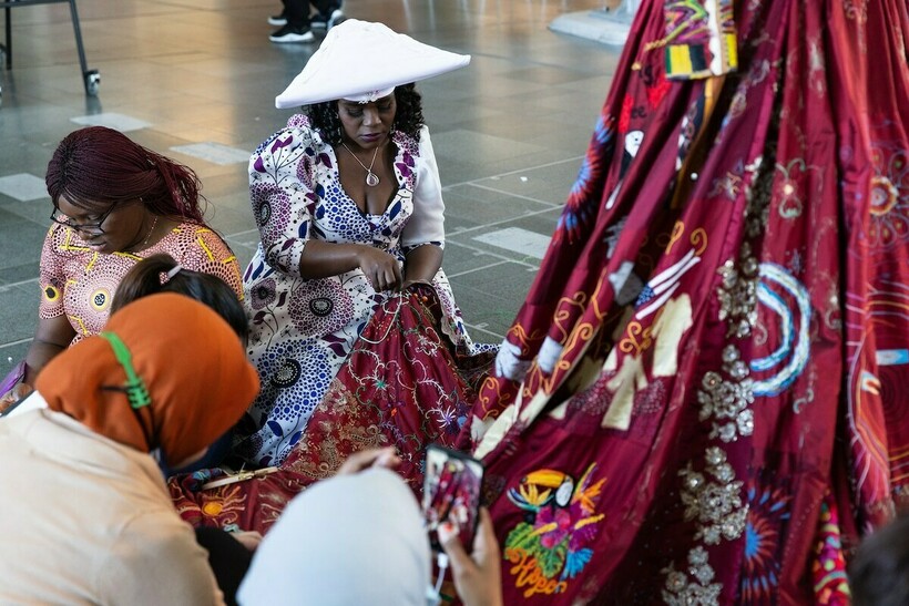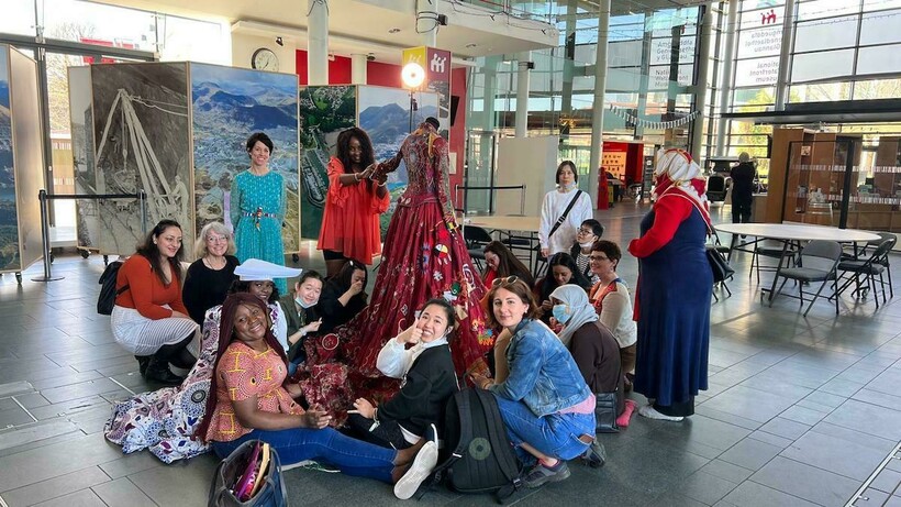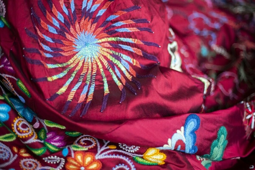 Путешествие платья началось в 2009 году, и за 13 лет наряд посетил 46 стран. Всего над платьем смогли поработать 343 художника. Кто-то из них был беженцем, другие — ремесленниками, которые впитали традиционную вышивку в семье, третьи — только начинающими вышивальщицами.