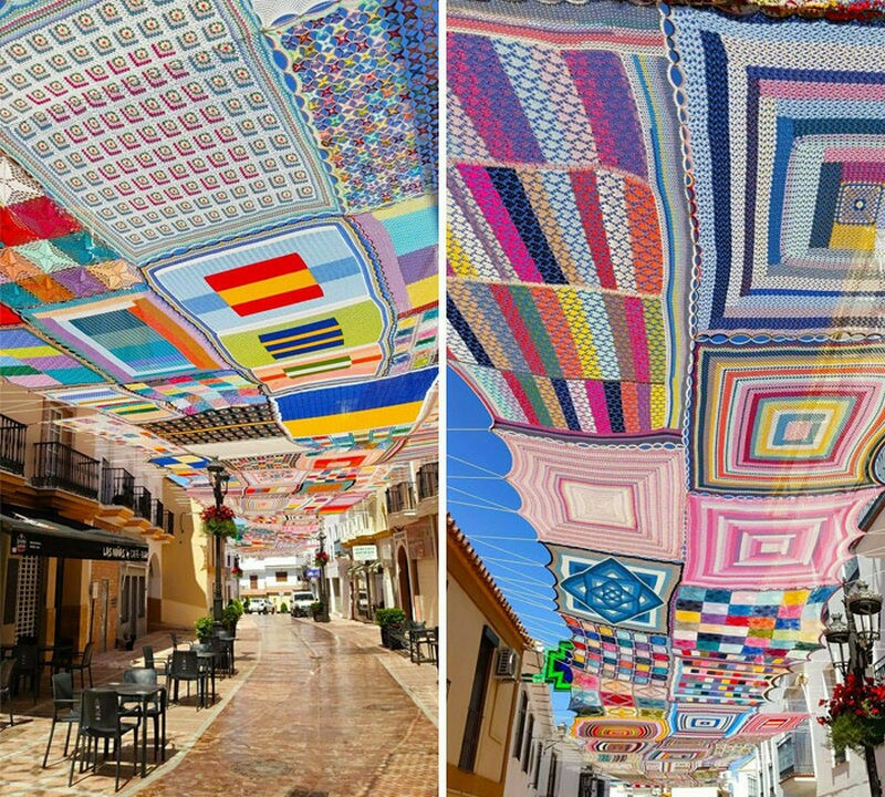 Сшитое местными рукодельницами покрывало, которое прячет улочку Малаги от палящего солнца