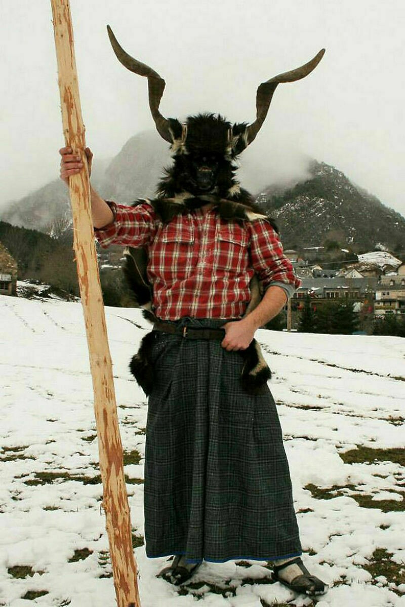 В стране и сегодня сильны дохристианские традиции: участник карнавала в испанском городке Бьельса