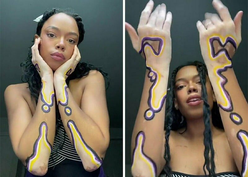 Алеман всегда была творческой, и однажды ее посетила идея добавить своей болезни красок. Она обрисовала витилиго яркими цветами, и это занятие так ее увлекло, что Амара теперь делает так регулярно.