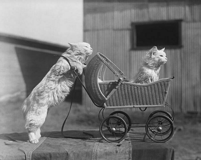 Коты зоопарка американского городка Калвер-Сити, которых обучали цирковым трюкам, 1925
