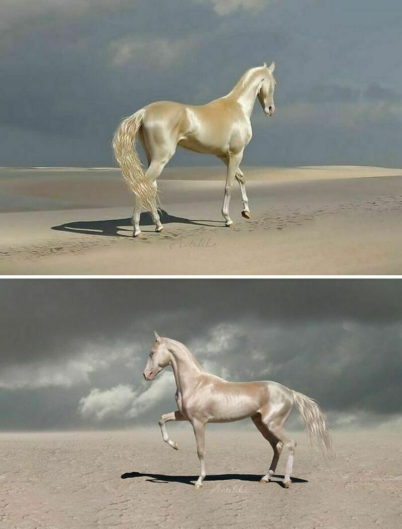 Ахалтекинская лошадь из Туркменистана изабелловой масти