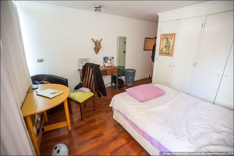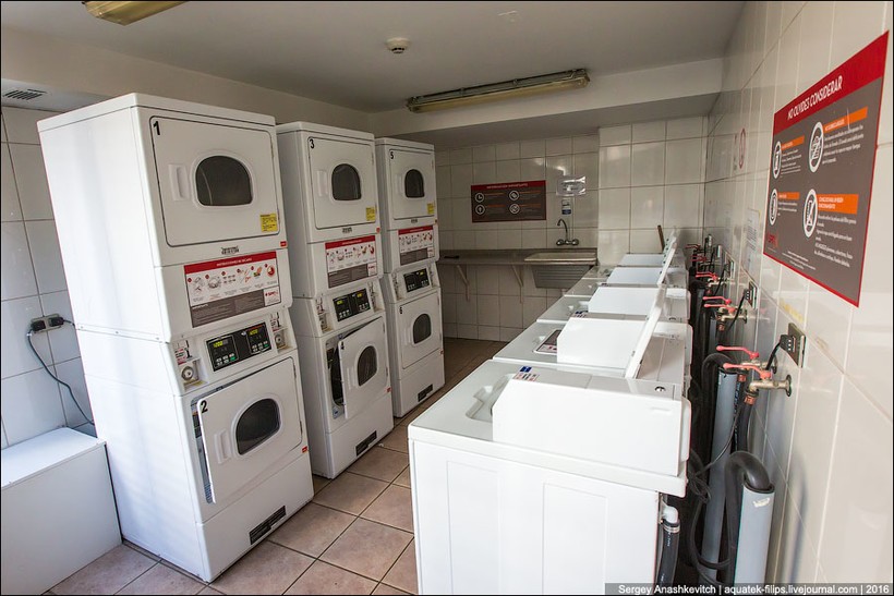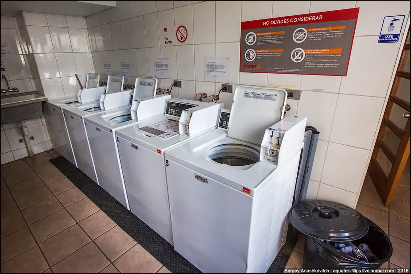 — Смотри, все квартиры в новых домах в Чили сдаются в стандартной комплектации: с ремонтом, мебелью, техникой. Стиралка в них не предусмотрена и не устанавливается. Для того, чтобы стирать вещи, во ВСЕХ в городе домах есть такие комнаты-прачечные. Никто даже не додумается ставить себе в квартиру стиралку. Зачем расходовать драгоценное место в квартире?