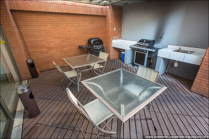 — Это тоже обязательно есть в каждом доме. Такая терраса и барбекю. Чтобы никто ничего не жарил в парках и на природе.