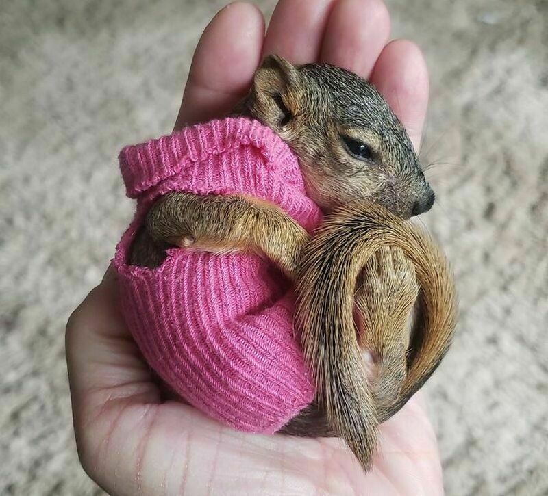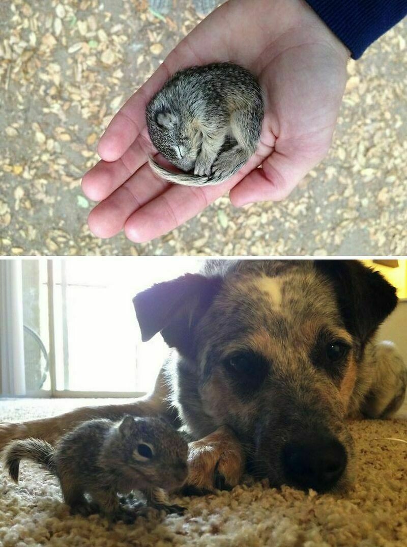 Мужчина спас бельчонка, и тот подружился с его собакой