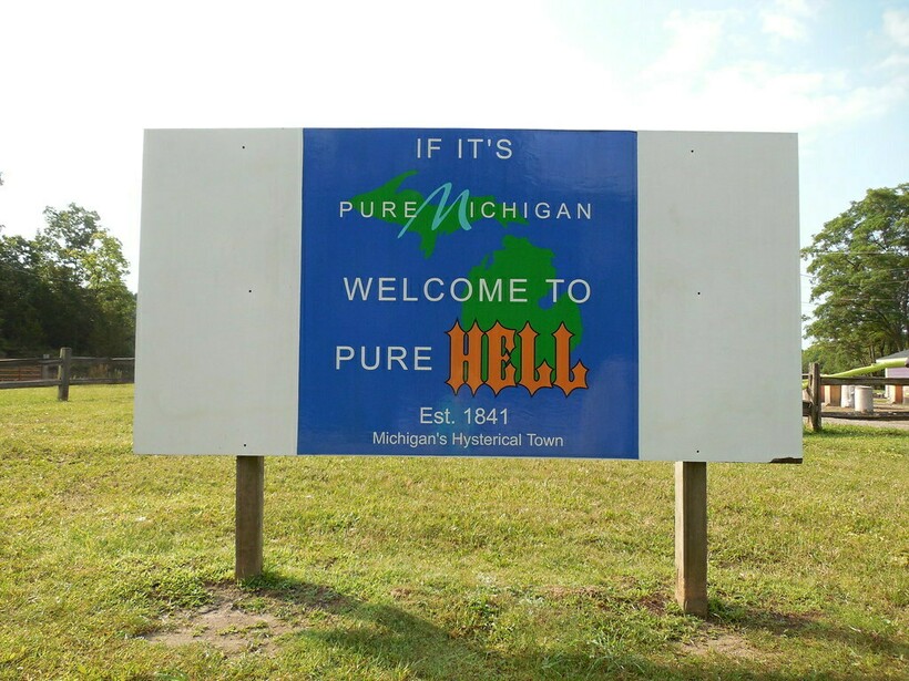Почему Ад стал Адом? Все очень просто: в 1830-х годах у этой территории не было названия. Эти земли принадлежали бизнесмену по имени Джордж Ривз (George Reeves): у него была лесопилка и еще несколько предприятий. Когда район стал частью штата Мичиган, у владельца спросили о названии его города. Ривз оказался весьма равнодушным к своим владениям и сказал, что ему все равно, как они будут называться, да хоть адом. Так и появилось на картах зловещее Hell.