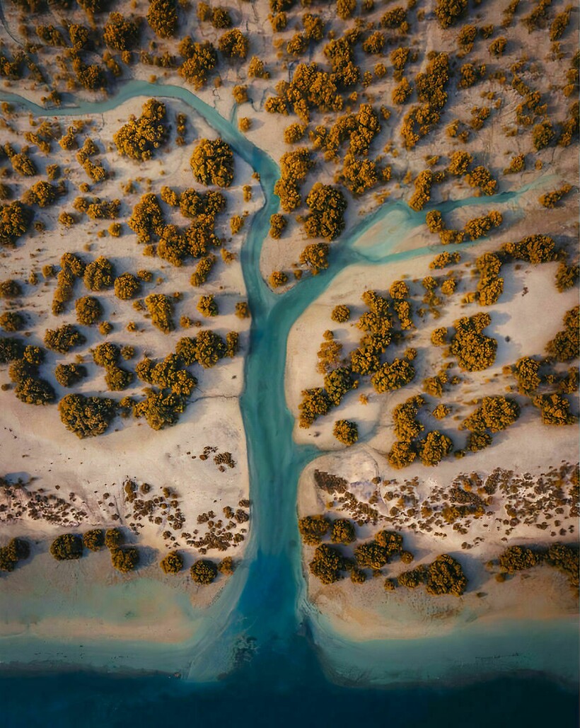 Редкие мангры в эмиратах, напоминающие с высоты огромное дерево