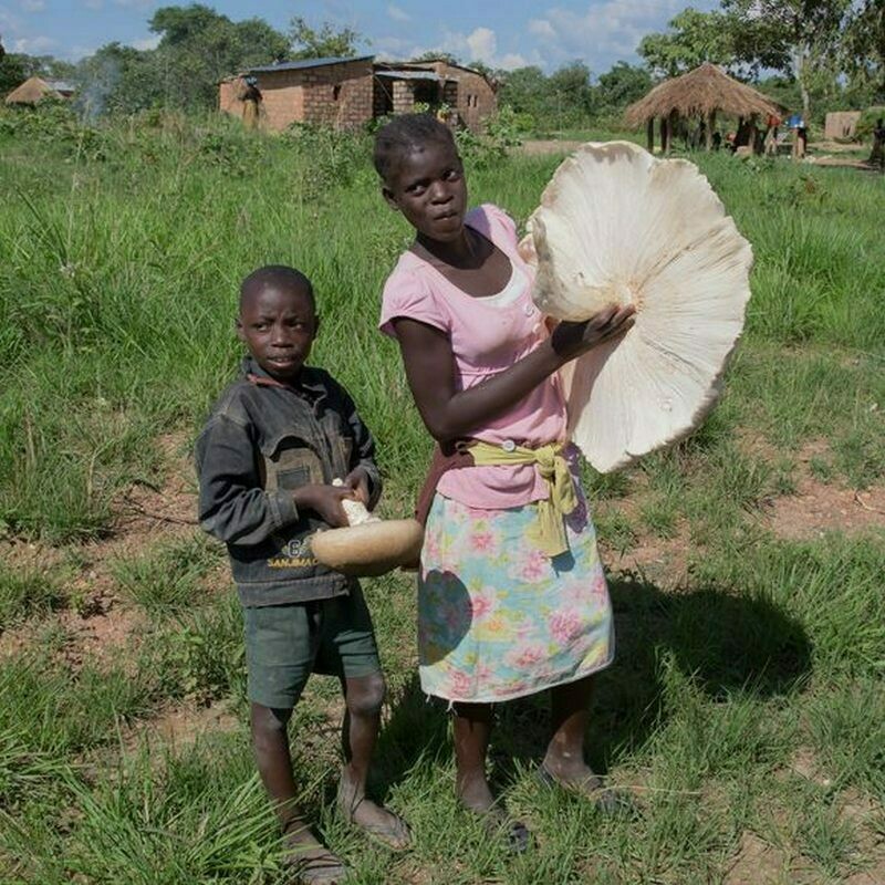 Пожалуй, единственное исключение из этого правила — это гриб, растущий в Западной Африке. Ученые узнали о нем совсем недавно, чуть больше сорока лет назад, однако термитомицес давно входит в рацион многих африканцев. Его не просто так назвали в честь древнегреческих божеств титанов, ведь размеры термитомицеса действительно огромные: шляпка может достигать метра в диаметре, а ножка — полметра, а иногда и больше в высоту. Особенно эти грибы популярны в Замбии, но также они встречаются в некоторых регионах Конго и Кении.
