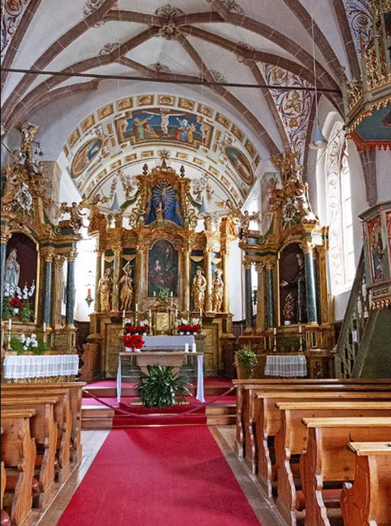 Строительство церкви в этом месте связано с одной легендой: говорят, что когда-то местная река вынесла на берег статую итальянской святой Марии-Маддалены. Это посчитали знаком свыше и тут построили церковь. С виду здание выглядит очень скромно, но внутри церковь великолепна.