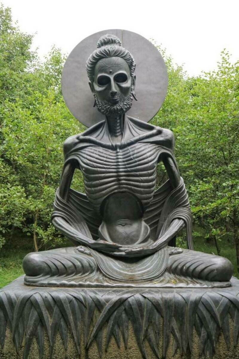 Еще одна скульптура — истощенный Будда. Он сидит в позе лотоса в предельной концентрации в поисках своего пути.