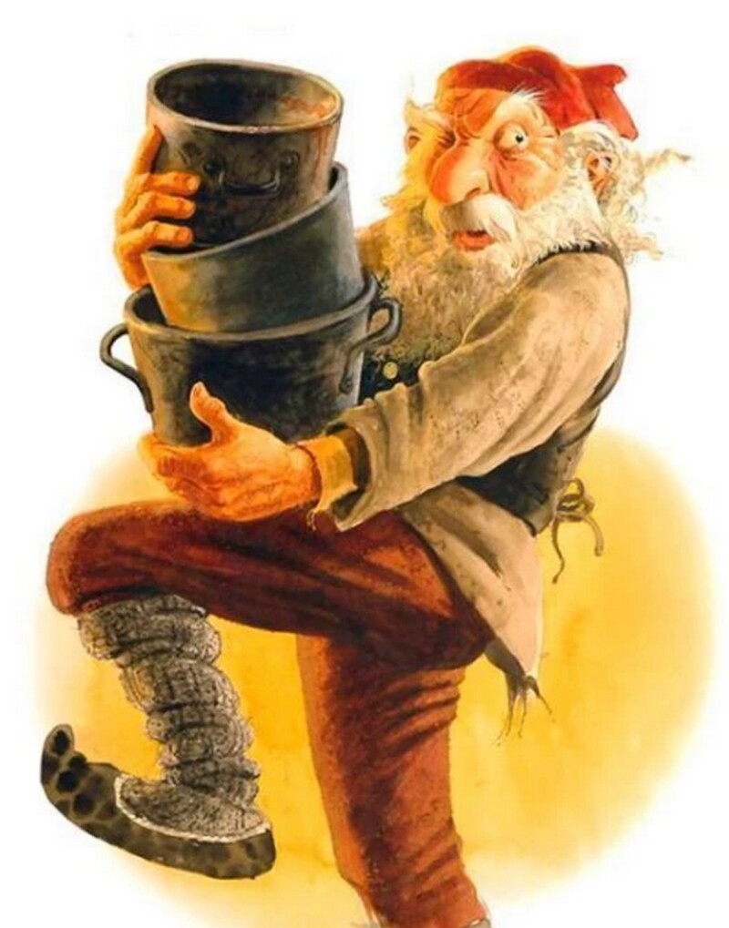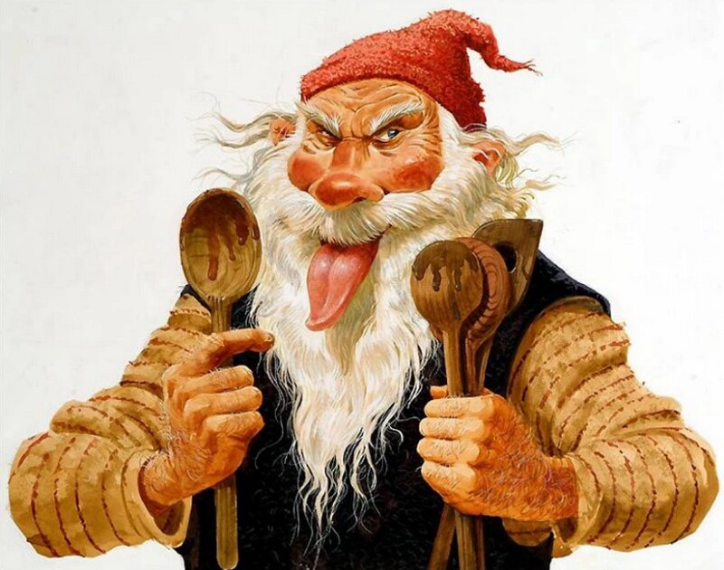 Стувюр, или Коротышка, ворует остатки еды на сковородках