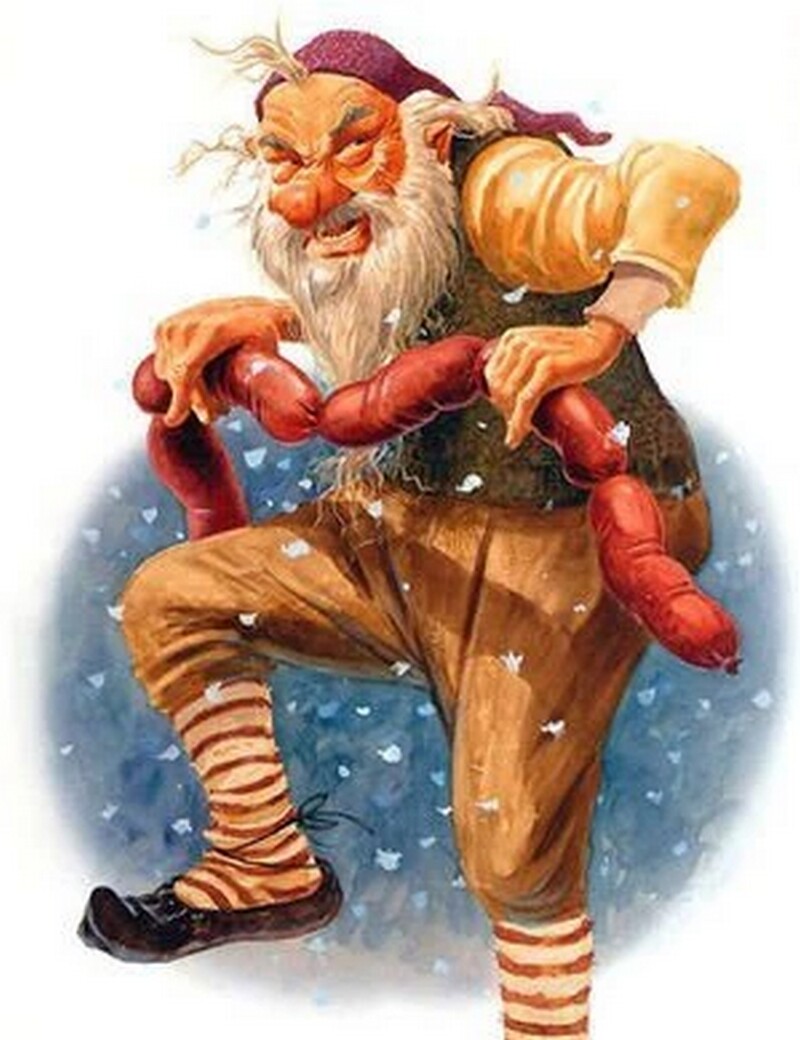 Мы рассказывали вам, как зовут Дедов Морозов в разных странах. В Исландии зимних персонажей гораздо больше, и когда-то они были настоящими монстрами, правда, со временем подобрели (но не все, страшным сказкам все еще есть место!). По исландским преданиям, Йоласвейнары — дети великанши-людоедки по имени Грила и ее мужа Леппалуди (дословно переводится как «ленивый муж»). В Рождество она спускается с гор и ворует детей, чтобы сварить их заживо. Но на этом злоключения исландской ребятни не заканчиваются: им также надо опасаться Йольского кота, который рыщет по стране в поисках ленивых детей, чтобы тоже их съесть. За Леппалуди никаких кошмарных историй замечено не было, но он наверняка ест то, что приготовила его женушка.