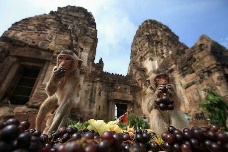В городе Лопбури есть необычный праздник — Monkey Buffet Festival. Празднуют его следующим образом: для местных обезьян здесь накрывают самый настоящий шведский стол. Конечно, он ломится от яств, обезьяны могут полакомиться всем, чем захотят. Обычно мероприятие собирает около двух тысяч макак, а людей, которые пришли понаблюдать за этим праздником, в разы больше. Местные верят, что обезьяны приносят в их регион удачу. Но это далеко не единственный повод устроить застолье: подобная трапеза может задобрить макак, которые иногда бывают весьма агрессивными.