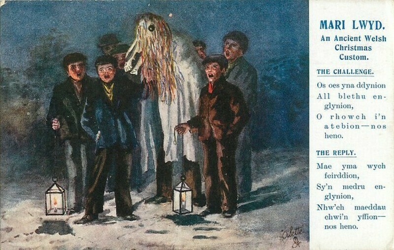Свои странности есть и у валлийцев. Например, в рождественские праздники они ходят по домам с черепом коня. Традиция получила название Mari Lwyd, или «Серая Лошадь». Череп коня носят не в руках, его закрепляют на палке, с которой идет человек, наряженный в белый балахон. Выглядит весьма жутко, так как из-за белого одеяния кажется, будто череп движется сам. Лошадь бродит по улицам не одна, а в компании юношей и девушек, одетых в маскарадные костюмы. Они поют рождественские гимны, ходят по домам и вступают в словесные баталии с хозяевами. Не подумайте, это не просто ругательства: это перепалка в стихотворной форме. Когда у хозяев не остается фантазий на стихи, они должны пригласить ряженых в дом на угощения.