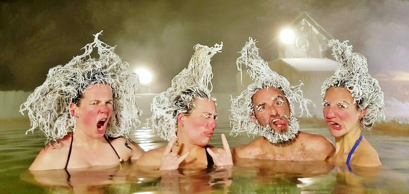 Каждый год здесь проходит фестиваль замерших волос: люди в -30°C опускаются в горячие источники и ждут, когда их волосы превратятся в самые крутые зимние прически. Этому уникальному фестивалю у нас даже посвящена отдельная статья: вы можете посмотреть на участников мероприятия вот здесь.