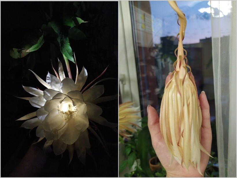 Но как же предсказать, что цветок распустится? Тут у владельцев есть свои методы. Известно, что Принцесса ночи распускается либо весной, либо летом. Дальше есть лишь догадки: кто-то считает, что распускается эпифиллум при полнолунии, а другие говорят, что после проливных дождей.