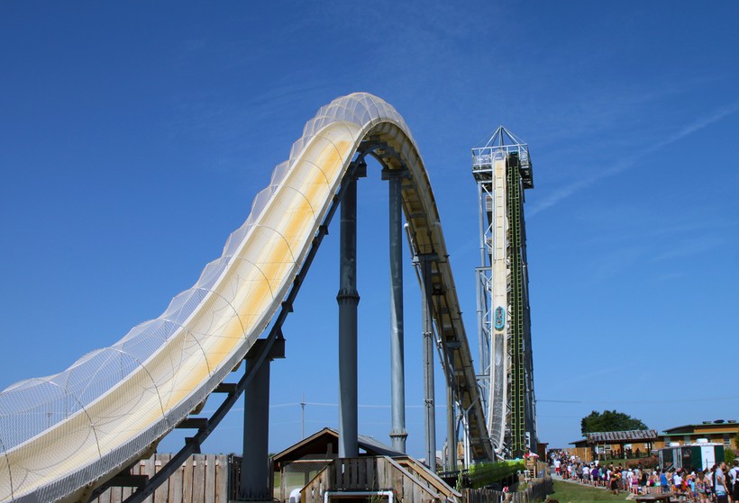 На втором месте находится водная горка аквапарке Schlitterbahn под названием Verruckt, что с немецкого означает «безумный». Аттракцион и правда безумно высок: ее высота 52 метра, что равно 17-этажному зданию.