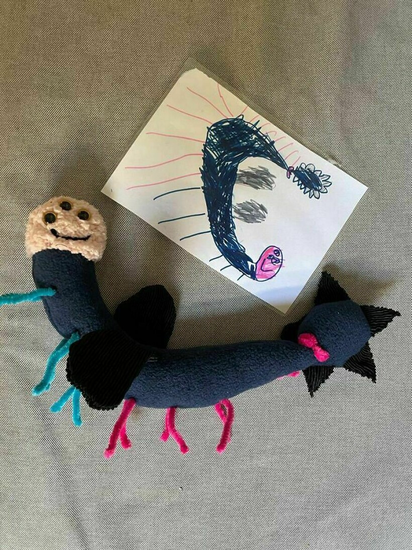 У детей безграничная фантазия, увы, это удивительное умение с возрастом теряется. Поэтому так важно сохранять детские рисунки в память о том, что любой ребенок умеет мечтать и представлять неведомых существ покруче некоторых режиссеров. Еще лучше — воплотить эти игрушки в жизнь. Мы вам рассказывали об одной умелице, которая вяжет игрушки на заказ по детским рисункам. Сегодня у нас еще одна трогательная история об учительнице из австралийского Мельбурна, которая сшила игрушки для своих учеников.