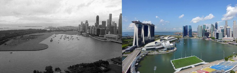 Так, известная и любимая туристами Марина-Бэй, которая стала новым центром Сингапура, тоже стоит на частично намытой земле. Автор видеоролика рассказывает подробно, как сильно изменилась эта страна за десятилетия и как она нарастила свои территории.