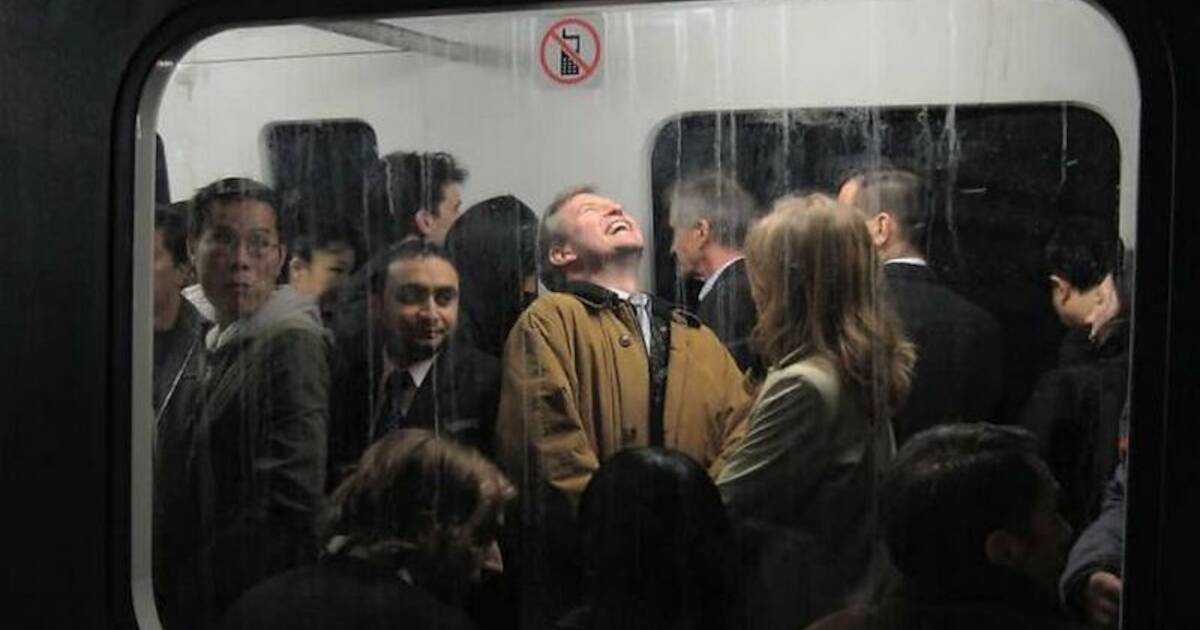 Мужчина в метро с маленьким котенком