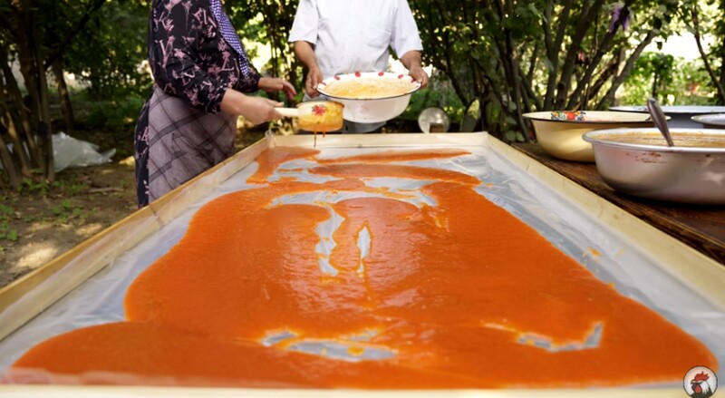 Автор видеоролика предлагает погрузиться в деревенскую жизнь Азербайджана и ее блюда. Кухня в этой стране восхитительная: например, тут готовят сироп из сирени, мы рассказывали о нем вот тут. Что касается пастилы, то обилие фруктов позволяет запастись ей надолго.